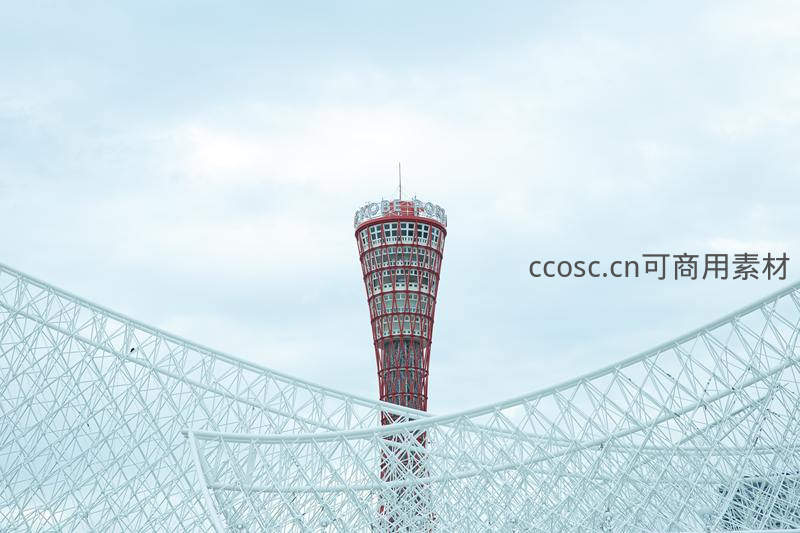 红色观光塔矗立于白色网格结构之上