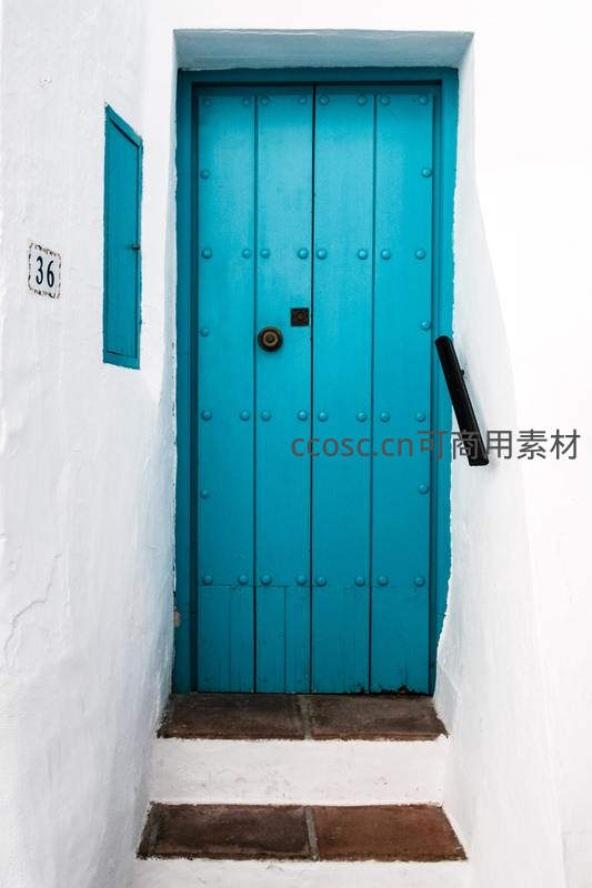 地中海风格蓝色木门巷道