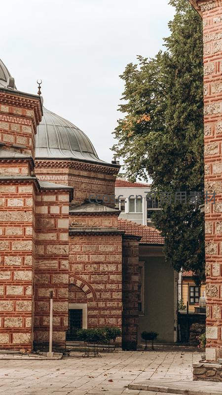 红砖清真寺庭院静谧古朴