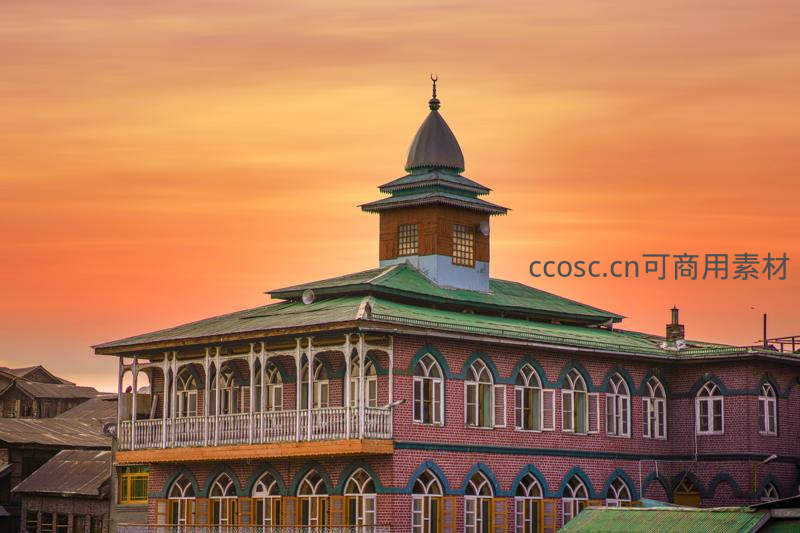 夕阳下的彩色清真寺建筑