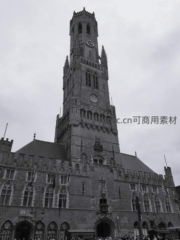 哥特式钟楼俯瞰古城广场
