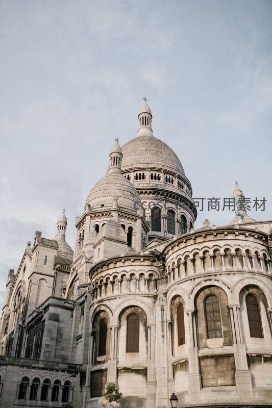 巴黎圣心大教堂的白色穹顶在阴云密布的天空下显得格外圣洁与宁静,其独特的拜占庭式风格与罗马式元素融合,是蒙马特高地的标志性建筑。