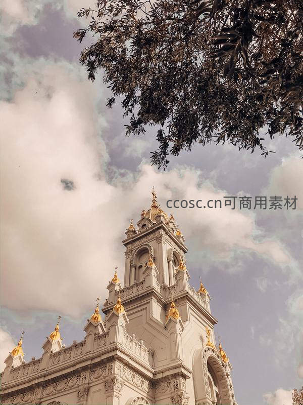 云影下的金色教堂尖顶