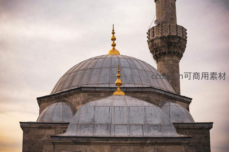 清真寺穹顶金饰在暮色中闪耀