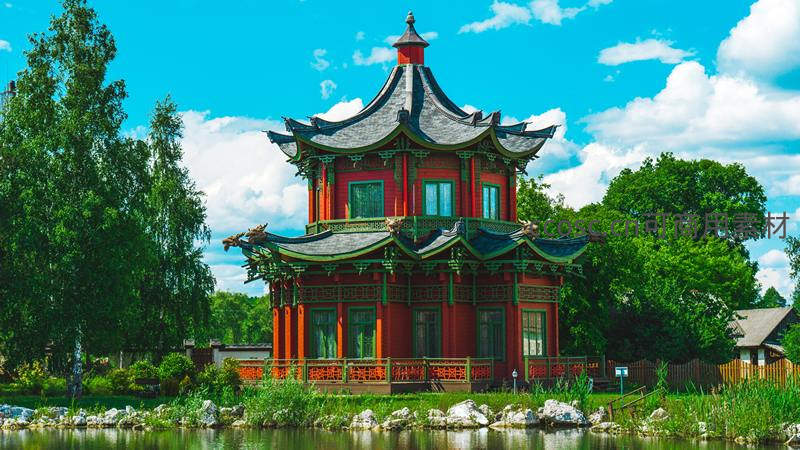 湖畔红阁古韵悠然