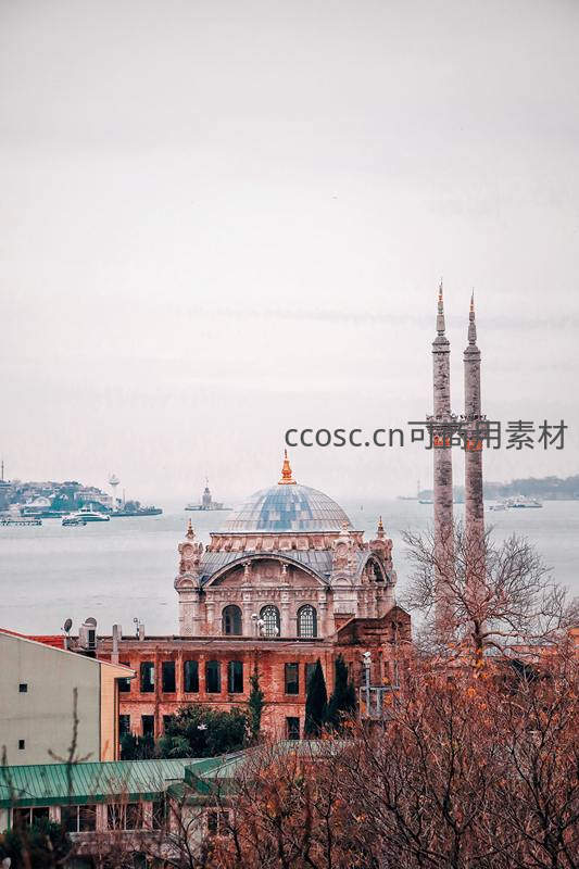 博斯普鲁斯海峡畔,清真寺穹顶与双塔遥望远方