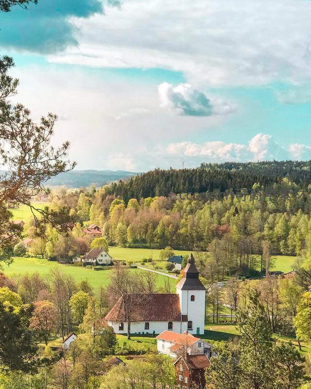 山谷教堂俯瞰绿野春色如画