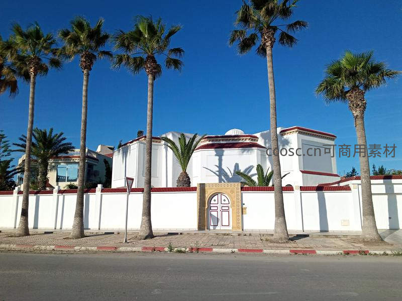 棕榈树下白色围墙拱门宅邸