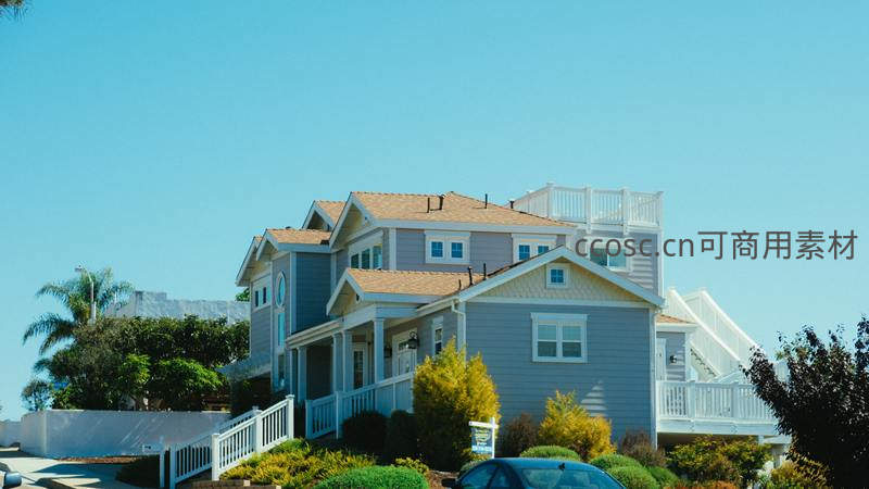 海边灰色联排别墅群阳光明媚