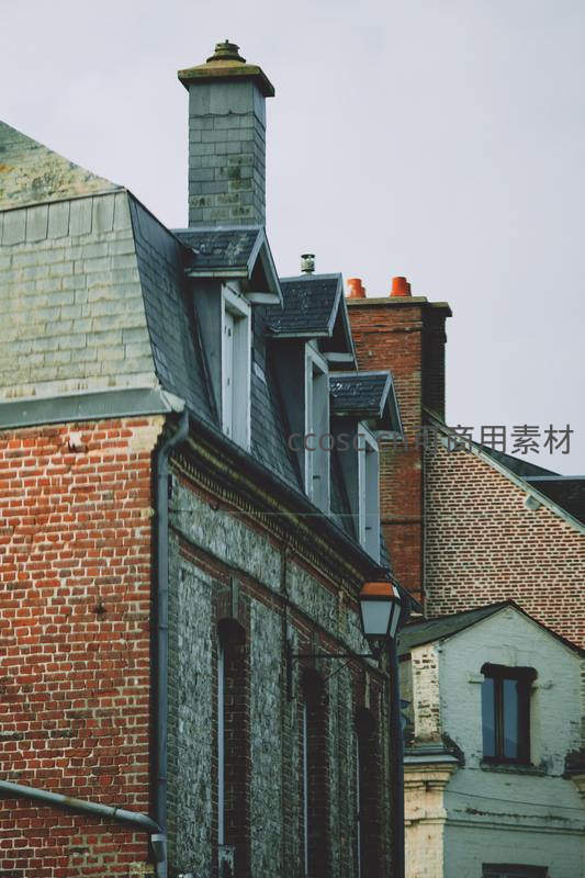 砖石老屋与灰色瓦顶的街景