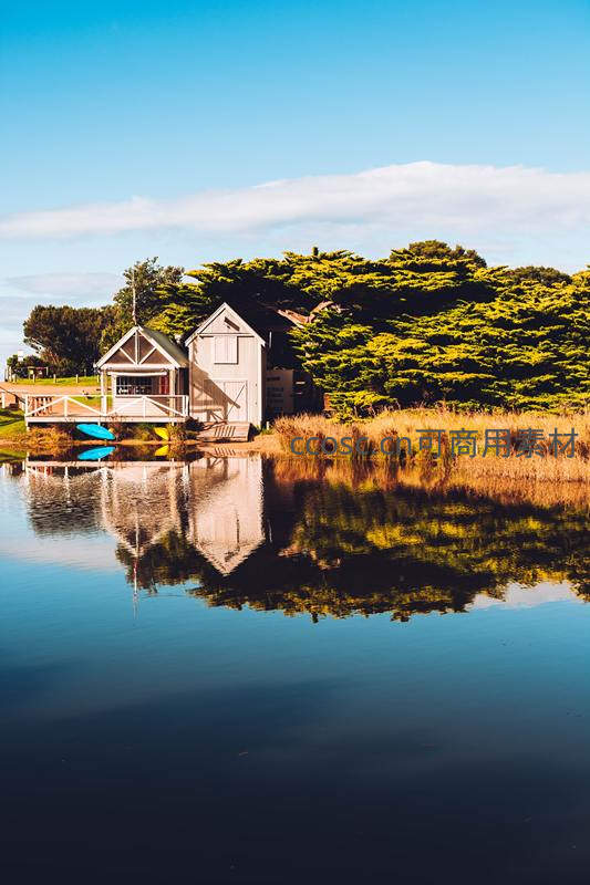 湖畔木屋倒影如画般宁静