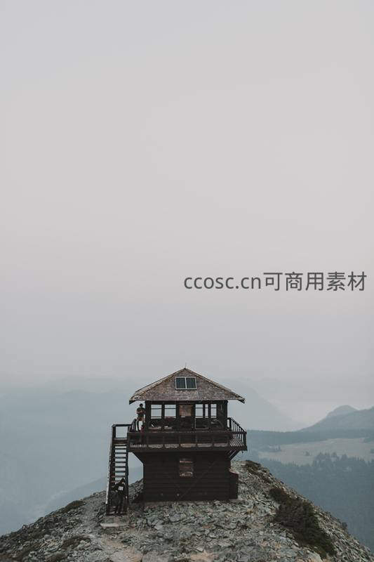 孤峰之巅的木质瞭望塔