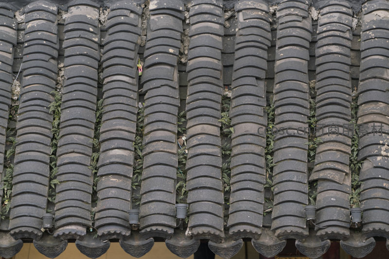 古瓦缝隙间顽强生长的绿植
