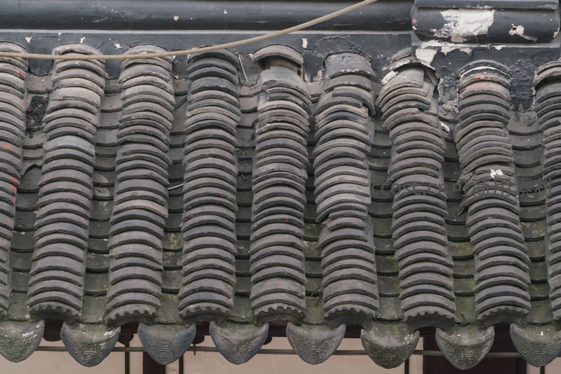 古朴青瓦屋檐特写
