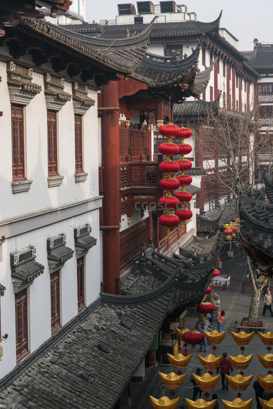 俯瞰古街红灯金元宝迎新春