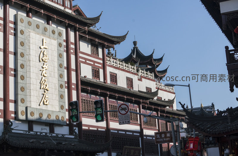 上海老饭店古建门楼街景繁华