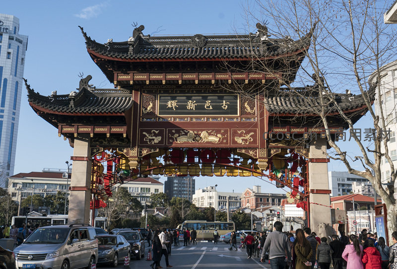 古色古香牌楼矗立街头,人潮涌动显繁华