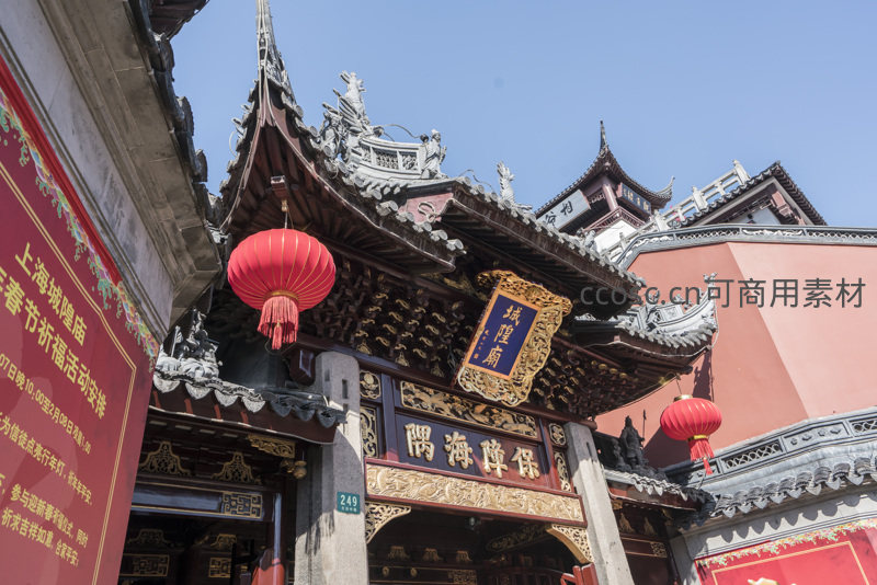 城隍庙门匾高悬,红灯映照祈福时
