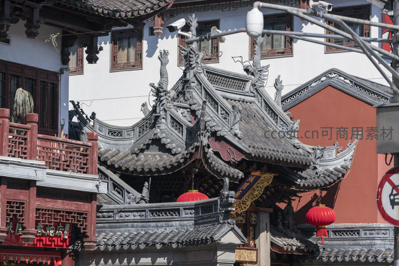 一座精雕细琢的古戏台或庙宇建筑,屋脊上装饰着栩栩如生的龙形雕塑,飞檐翘角,工艺精湛,体现了中国古代建筑艺术的高超技艺与文化底蕴。
