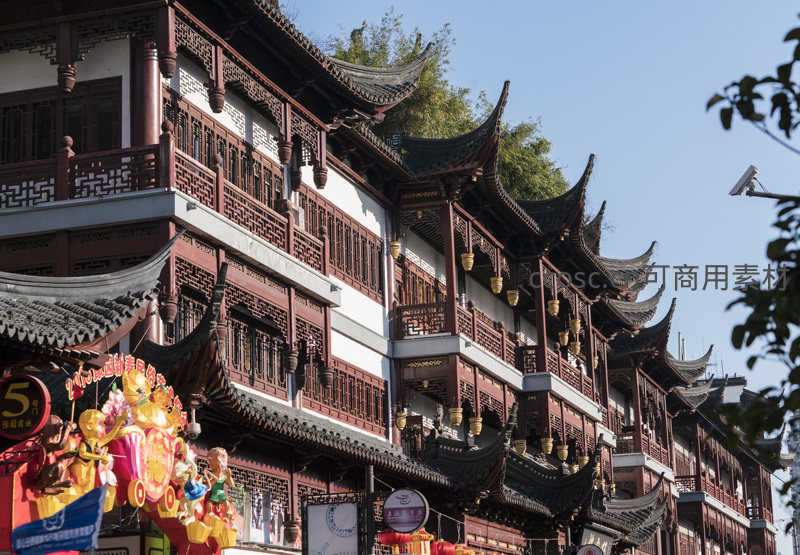 古街连排楼阁仰拍视角