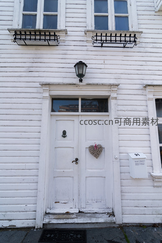 白色木门饰藤心挂件,复古灯笼映衬怀旧