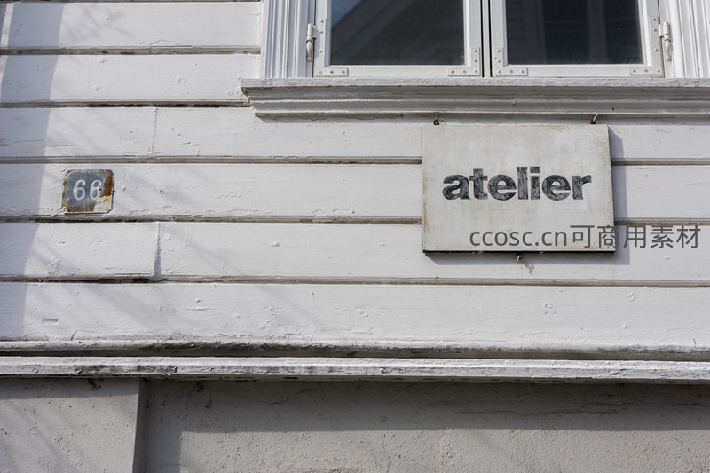一面刷白的木质外墙,悬挂着“atelier”字样招牌与“68”号牌,透露出这是一处充满艺术气息的工作室空间。