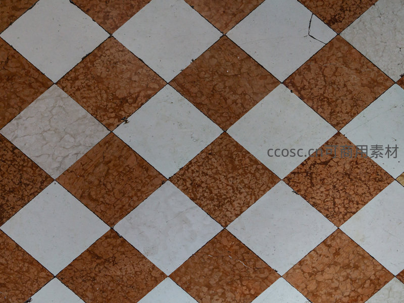 棕色与白色相间的菱形地砖铺陈开来,表面带有岁月留下的细微裂纹和磨损痕迹,呈现出一种怀旧而质朴的视觉效果。