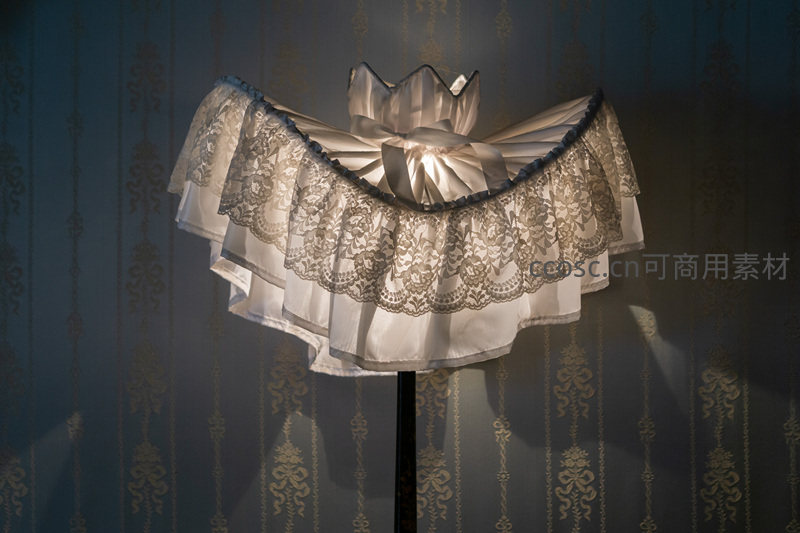 蕾丝边台灯罩映衬复古墙纸