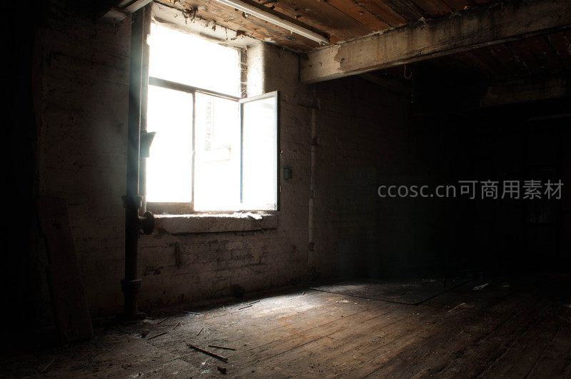 废弃房间阳光穿透窗棂