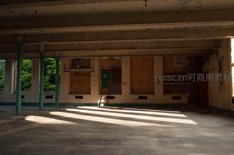 阳光穿透废弃空间洒下光束