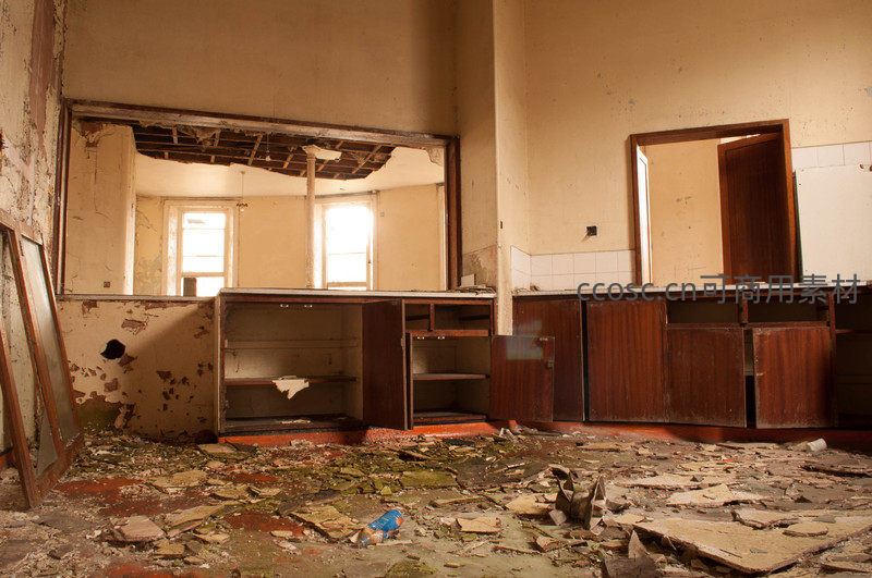 空荡厨房废墟残景