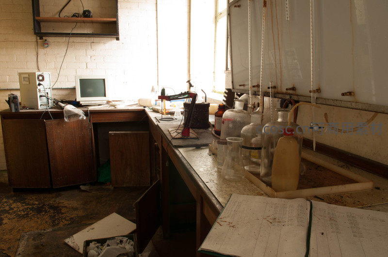 荒废实验室,老式电脑与实验器材静默伫立