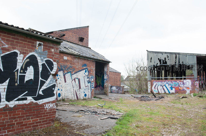 户外废弃厂区涂鸦墙景