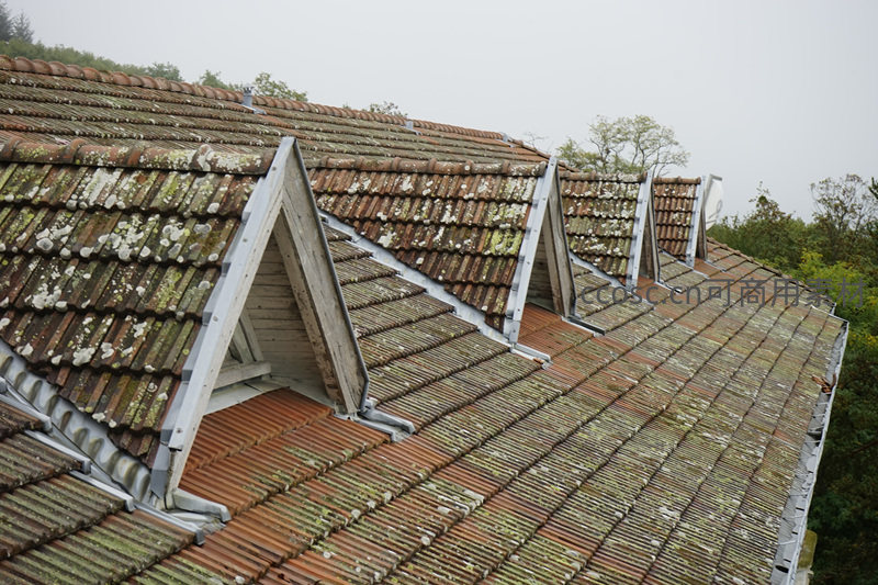 古朴瓦屋顶与三角天窗的岁月痕迹