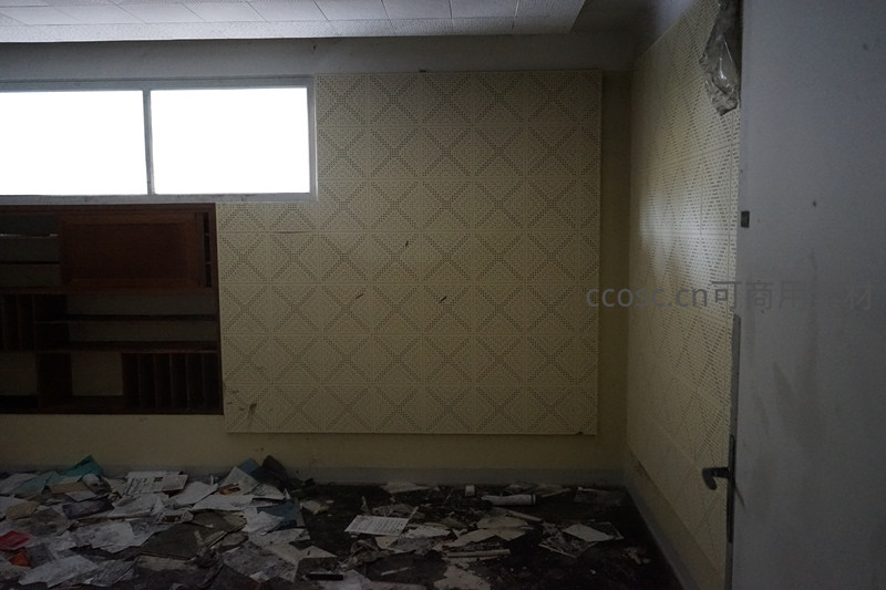 墙上贴满旧壁纸的废弃房间,地上堆满废纸