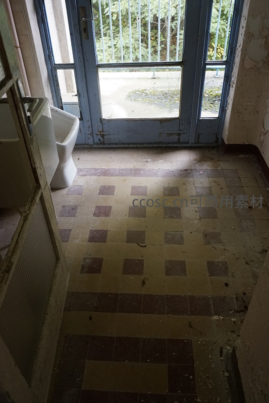 废弃卫生间门口的斑驳光影