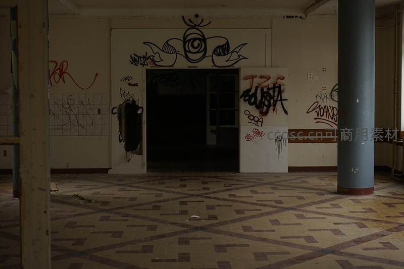 废弃建筑内墙涂鸦与破败地板