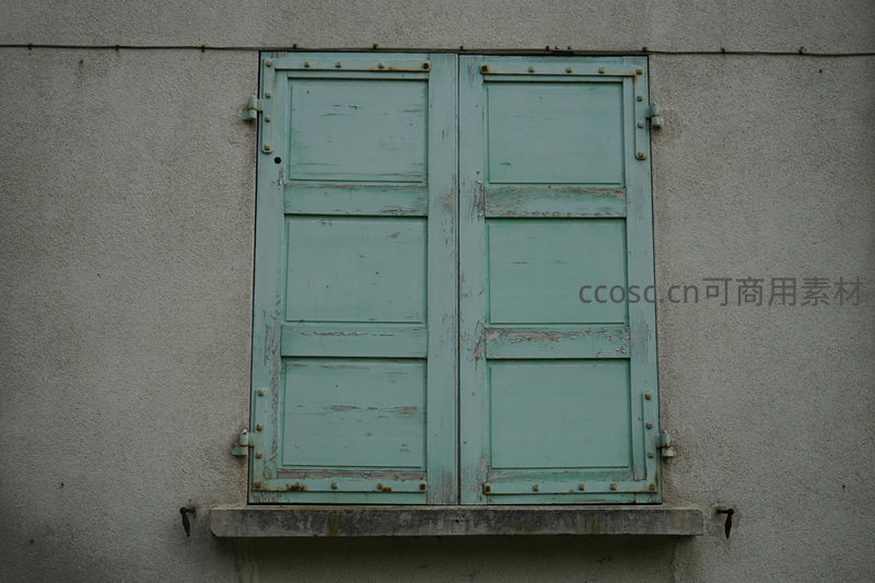 斑驳褪色的浅绿百叶窗