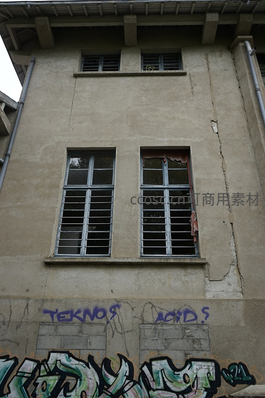 废弃建筑外墙与涂鸦艺术特写