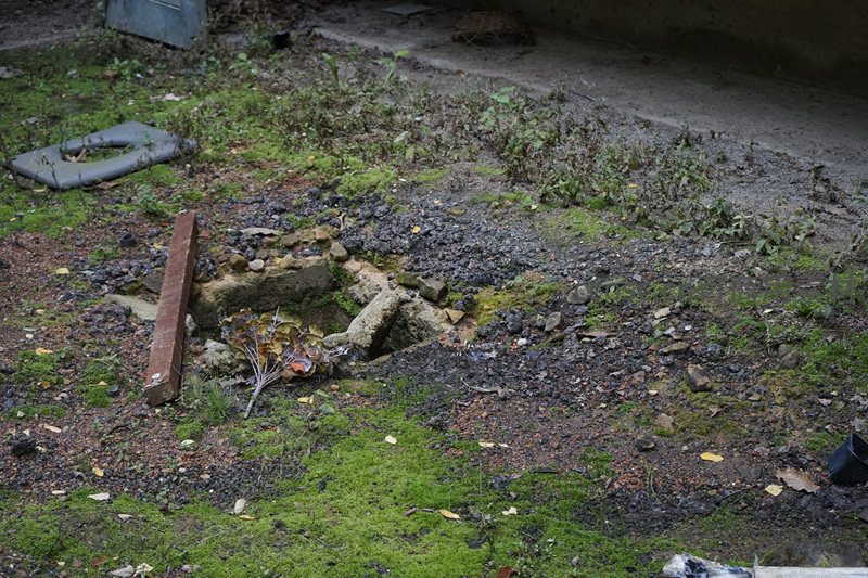 废弃角落的苔藓与碎石