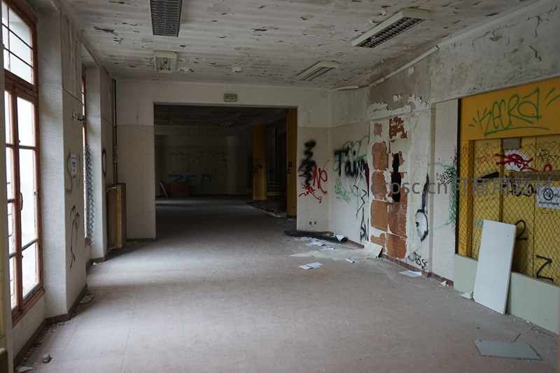 布满涂鸦的废弃室内走廊