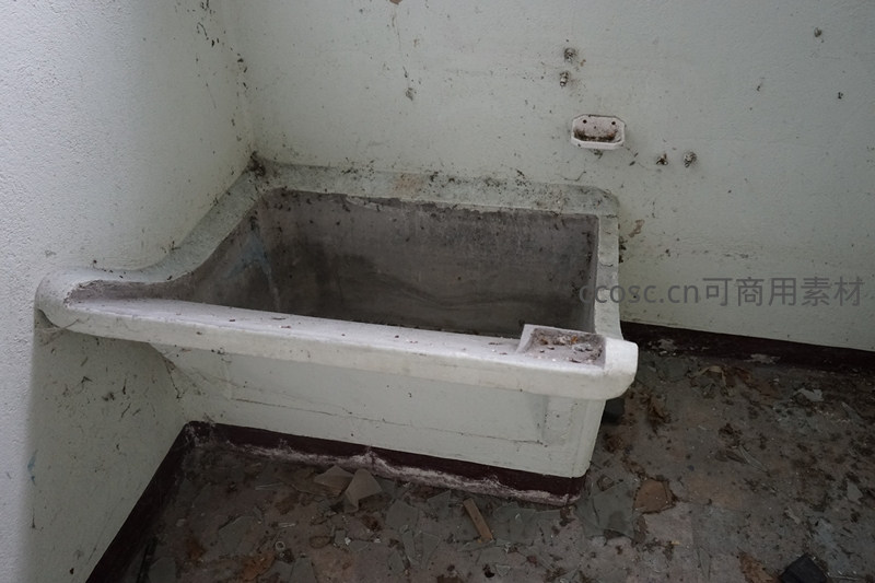 废弃角落的旧水槽,布满灰尘与岁月痕迹