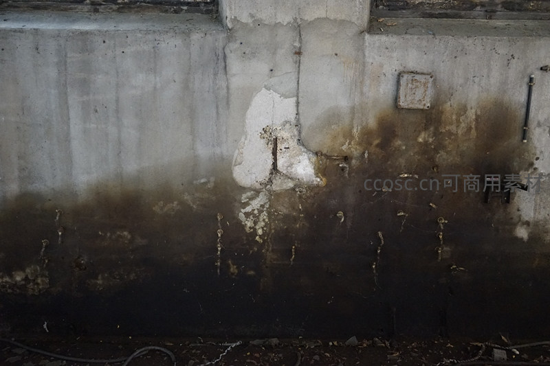 被熏黑的混凝土墙与剥落的涂料