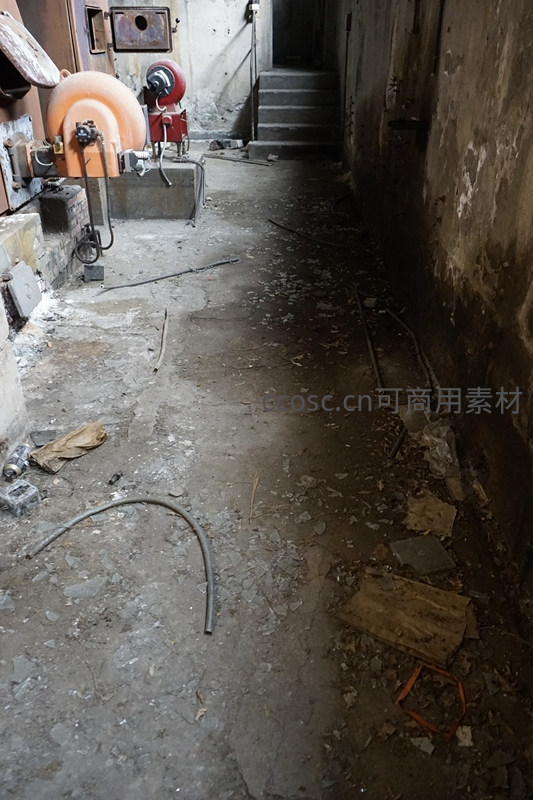 废弃工厂幽深走廊的破败景象