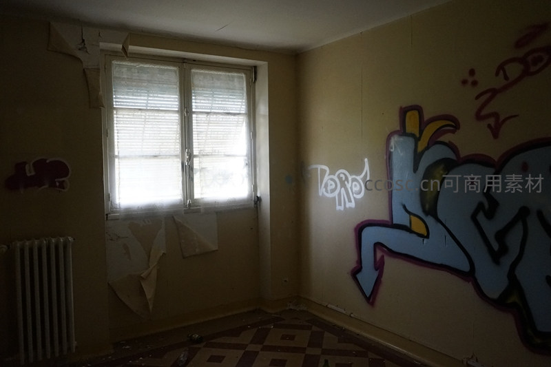 废弃房间内墙上的涂鸦艺术与破败景象