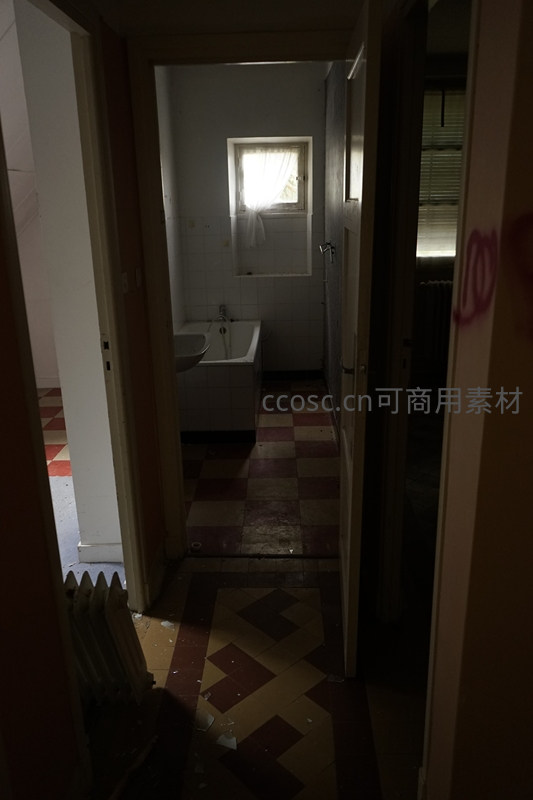 废弃浴室的幽暗角落与斑驳光影