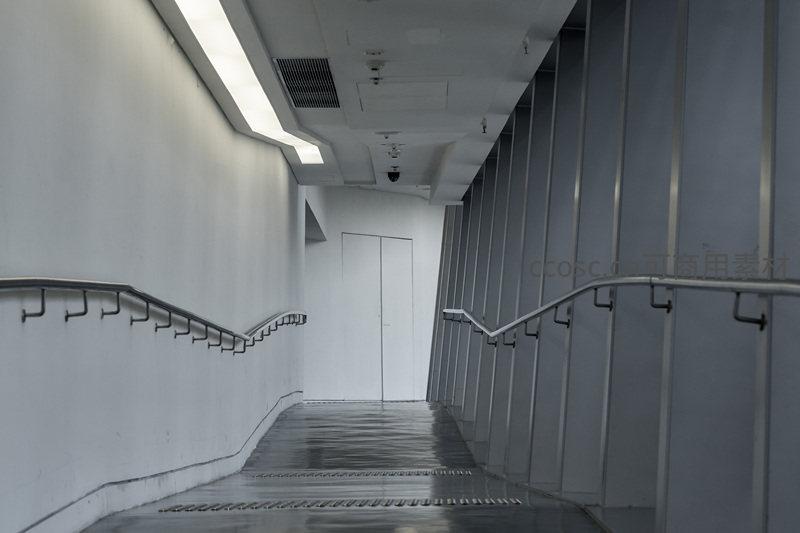 现代建筑内部的简约走廊与金属扶手