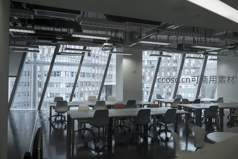 高挑空间内整齐排列的课桌椅