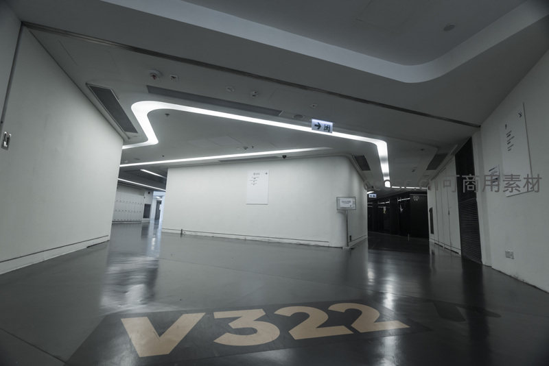 现代建筑内部走廊与V322标识
