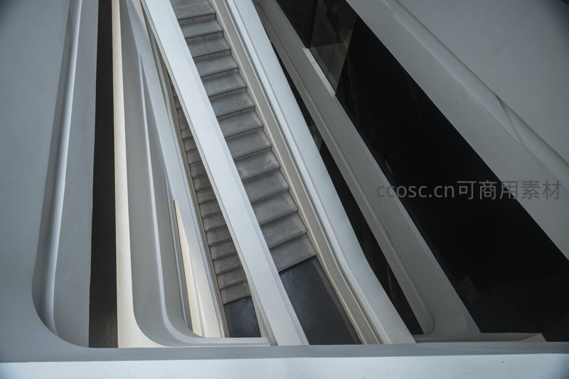 从高处向下俯瞰,楼梯如同一条纽带,串联起不同层级的空间。流畅的线条和清晰的几何结构,共同构成了一幅富有韵律感的建筑画卷。